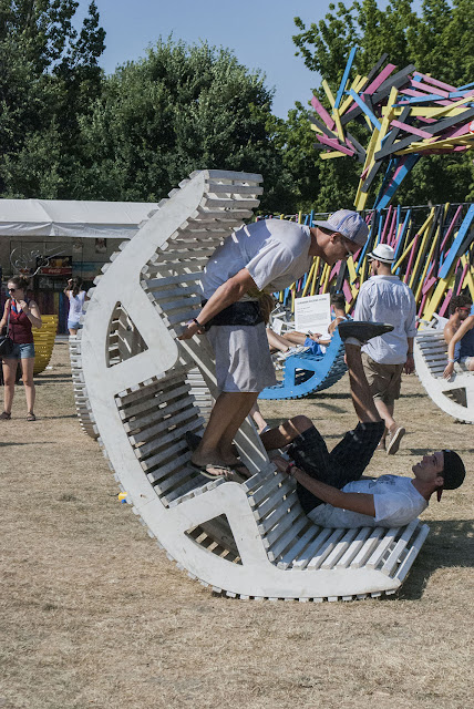| The heat took its toll and bands playing at ungodly hours (before 8 pm...) had a smaller than usual crowd in front of the stage, as people ran into the shade. Not these brave young men, though. |